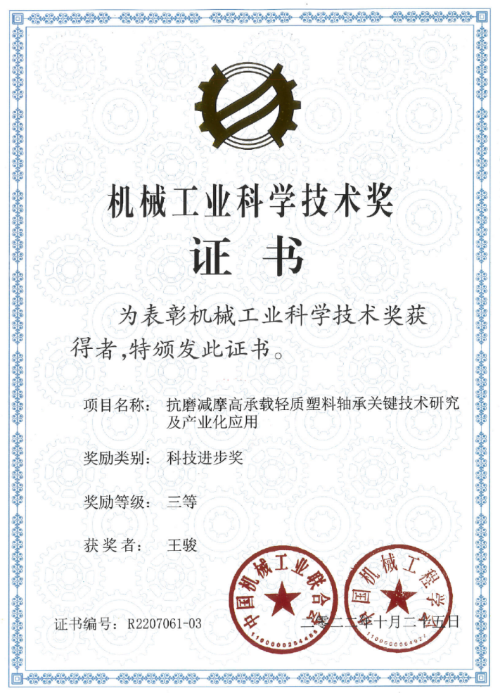 团队成员获得机械工业科学技术三等奖