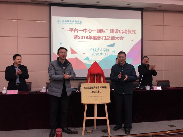 会上,龚方红校长和刘全胜处长共同为“江苏省高等职业教育智能设计与生产产教融合集成平台”“江苏省智能产线技术及装备工程研究中心”“江苏省高校智能制造装备设计及工程应用优秀科技创新团队”授牌。仪式结束后,龚校长做了重要讲话,充分肯定了机械学院2019年所取得的成绩,并对2020年度机械学院的工作提出了新要求。讲话中,龚校长再一次强调了党风廉政建设、师德师风建设、意识形态工作和安全稳定等工作的重要性,同时鼓励机械学院全体教职工依托“双高”校重点专业群建设的良好契机,再现“机老大”风采。