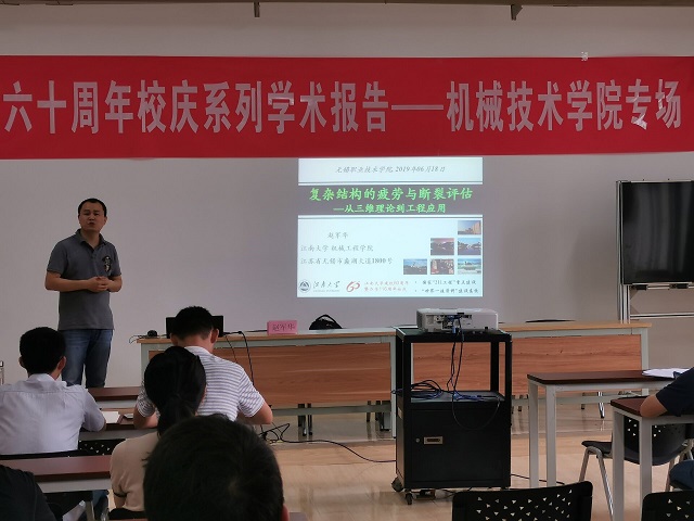 6月18日下午,江南大学机械工程学院副院长、博士生导师赵军华教授应邀前来我校开设题为“复杂结构的疲劳与断裂评估——从三维理论到工程应用”的专题学术报告,报告由机械技术学院副院长钱王欢主持。