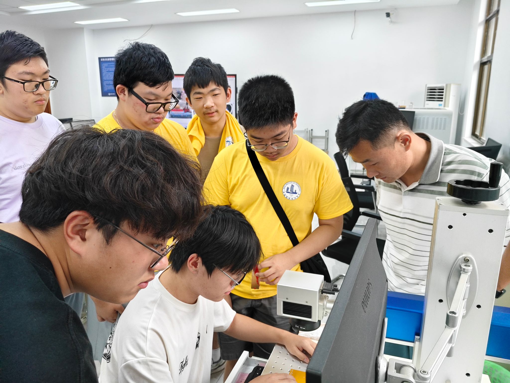 活动的最后一站是激光实验室。闫向阳老师为学生们介绍了实验室设备及激光加工样品,并为他们准备了书签和加工电子模板。在志愿者的指导下,学生们使用光纤激光打标机完成了名片设计和书签加工,还利用二氧化碳激光器在木板上标刻了姓名和图案。当一件件凝聚着自己创意的作品呈现在眼前时,学生们脸上洋溢着满满的成就感,纷纷表示这种即时可见的创作体验太棒了,科技的魅力在这一刻深深烙印在他们心中。