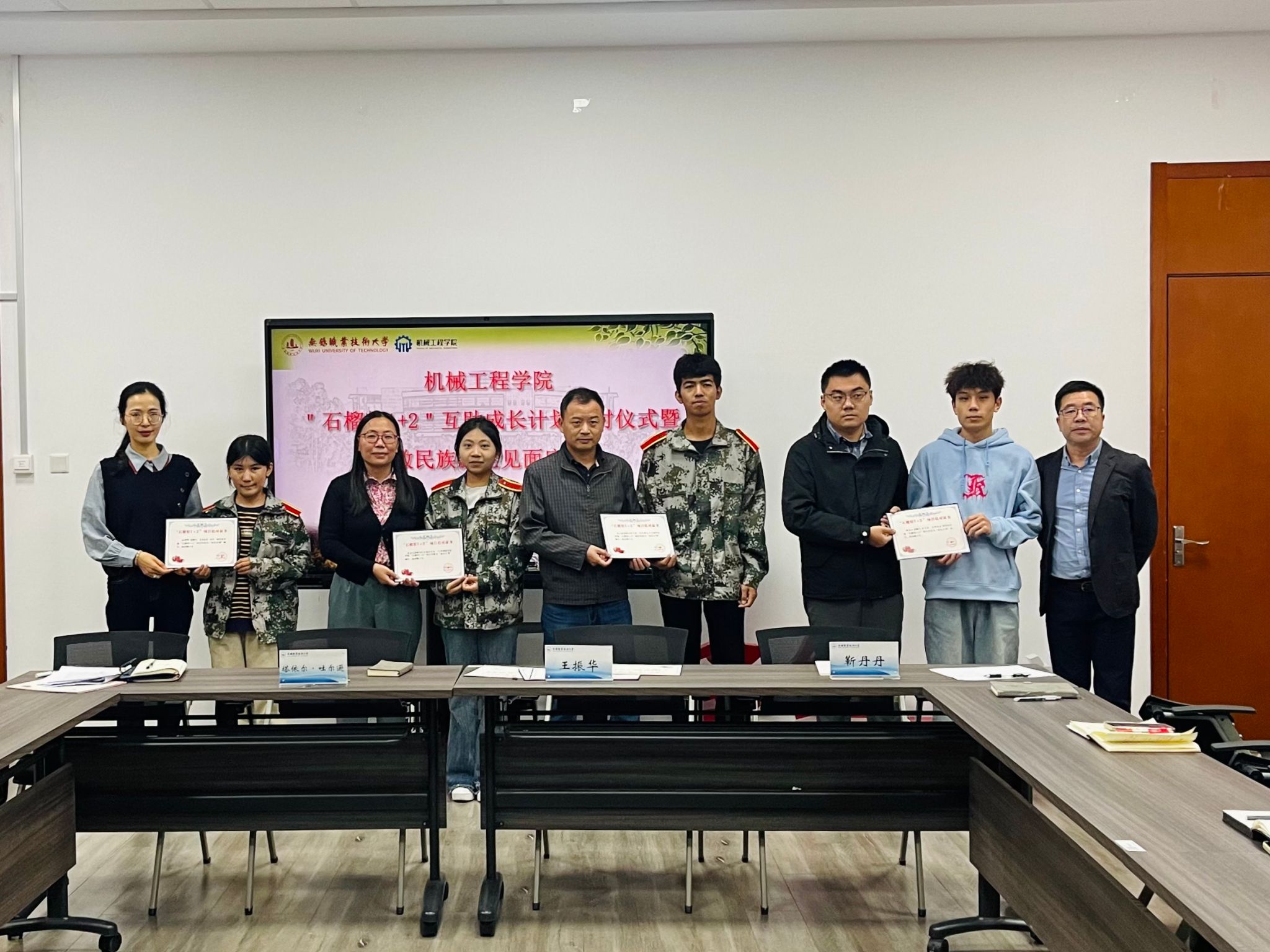 为深入学习贯彻党的二十大精神,铸牢中华民族共同体意识,全面了解25级少数民族新生的思想、学业与生活状况,助力新生快速适应大学生活、成长成才,10月21日,机械工程学院在工业中心N210开展“石榴籽1+2”互助成长结对仪式暨少数民族新生座谈会。机械工程学院党总支书记王振华、党总支副书记王丽梅、学生处少数民族专项负责人塔依尔、机械工程学院学工办主任靳丹丹担任嘉宾,共有30余名师生参加。