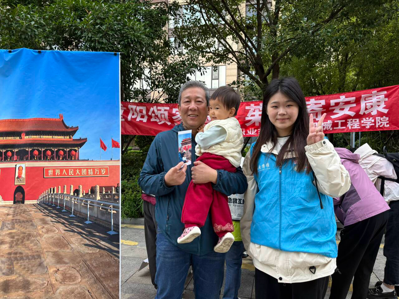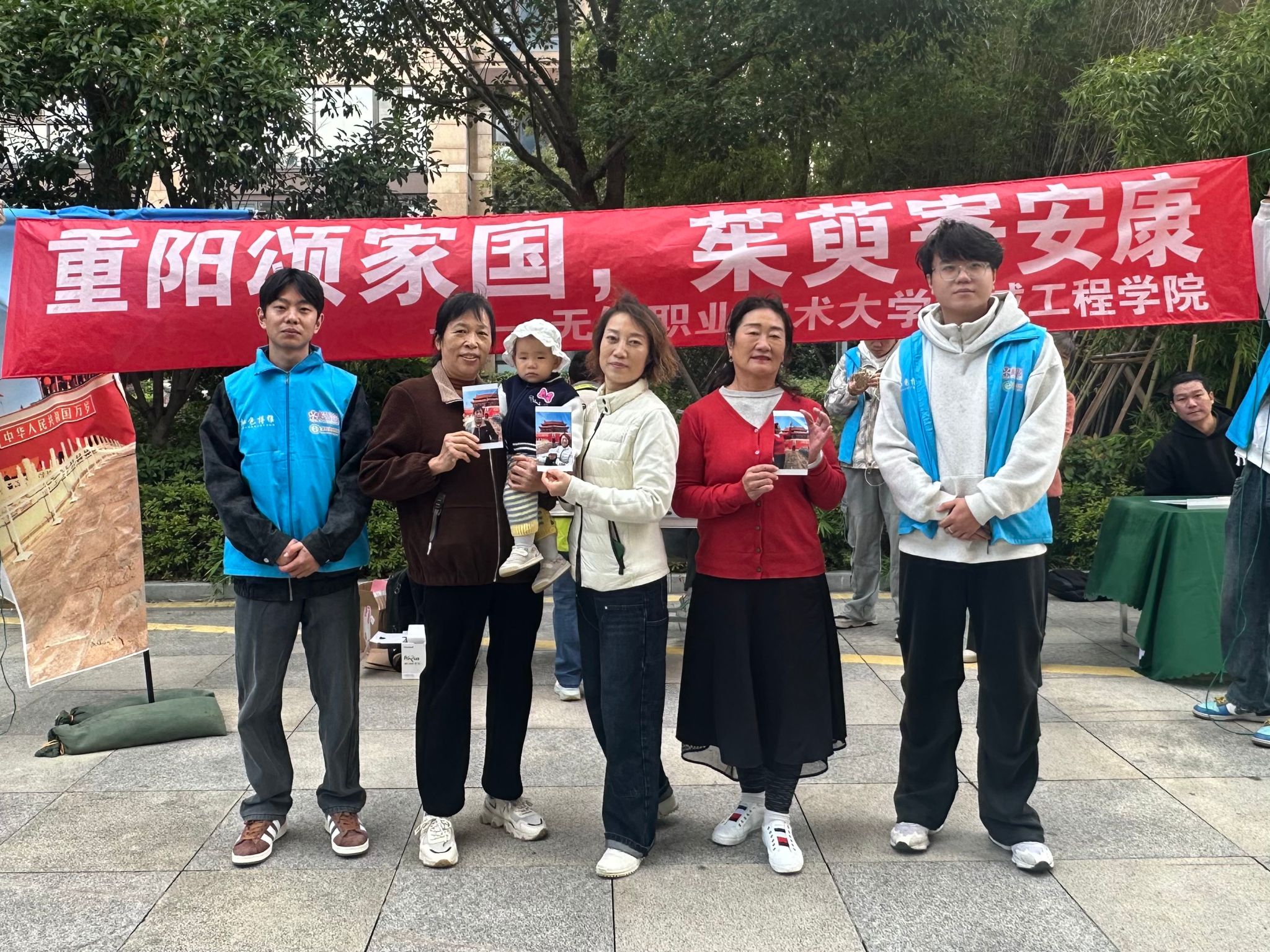 现场,以天安门为背景的幕布格外醒目,鲜红的底色与庄严的建筑图案,瞬间唤起老人们心中的家国记忆。志愿者们热情邀请老人们驻足,耐心引导站位、细致调整拍摄角度,轻轻为他们抚平衣物褶皱,用镜头定格下一张张饱含幸福的灿烂笑容。拍摄结束后,志愿者们立即启动现场冲印设备,实现照片即拍即打,第一时间将崭新的合影送到老人手中。接过照片的老人们喜笑颜开,纷纷感慨这张以天安门为背景的合影意义非凡,不仅留存了重阳佳节的美好瞬间,更承载着他们对祖国的深切热爱与诚挚祝福。