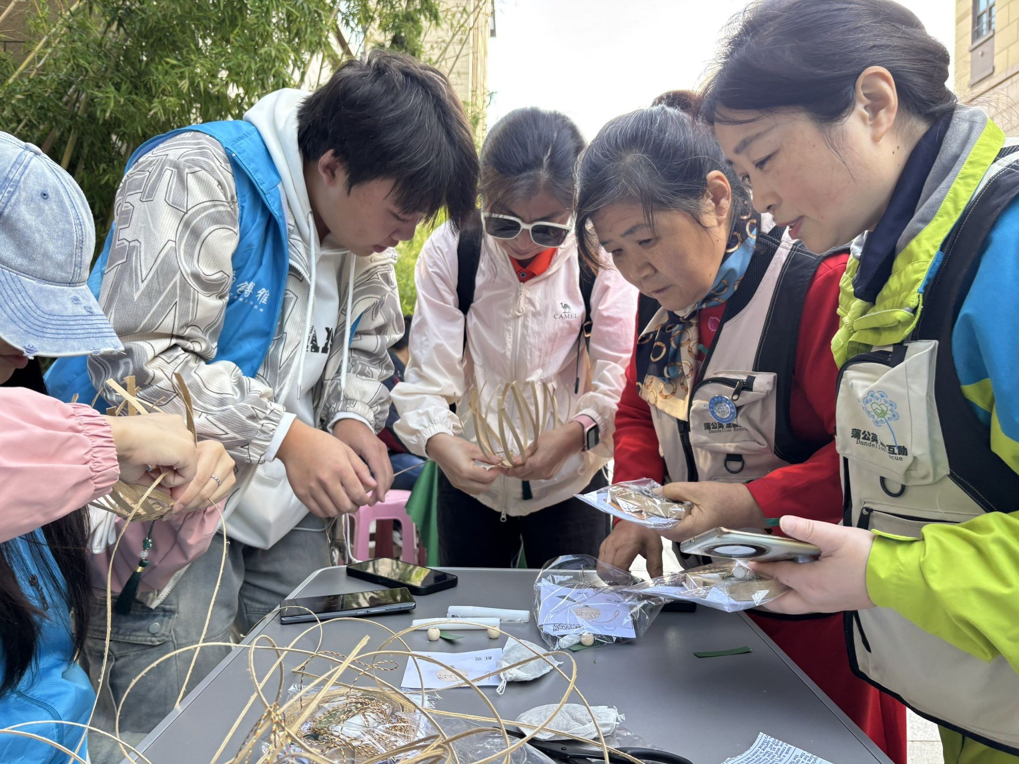 活动现场暖意融融,志愿者们提前备齐艾草、茱萸、彩线、竹条等材料,耐心向老人们讲解艾草茱萸香包的民俗渊源与制作技巧。从竹条裁剪、药材填充到香包编织、装饰成型,志愿者们全程手把手悉心指导,现场欢声笑语不绝于耳。老人们专注投入于手工制作,指尖翻飞间勾勒出对健康平安的美好期许。这一环节不仅传承了传统民俗文化,借天然药材实现驱虫保健的实用价值,更搭建起代际情感桥梁,让温暖在互动中传递。