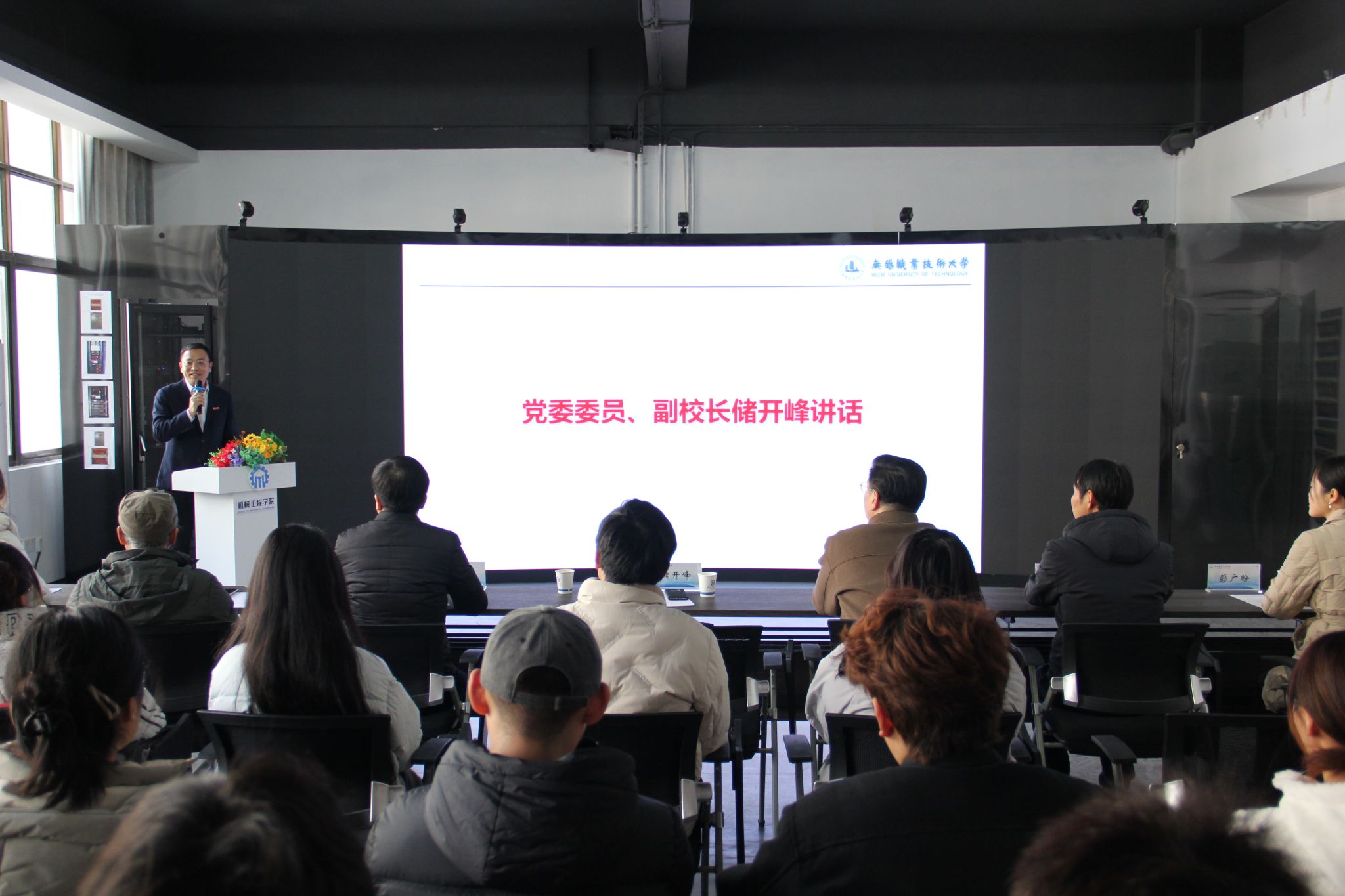 校党委委员、副校长储开峰作总结讲话。储校长表示,机械工程学院是学校办学历史最为悠久的二级教学机构,长期以来,学院逐步形成“取机械规范、育行业栋梁”的机械文化、孕育了“敢闯、敢创、敢为先”的无锡职院创新精神。他对获奖同学提出三点殷切希望:一是要以“勤学善思”筑牢根基,做本领过硬的知识青年;二是要以诚信守规砥砺品格,做德技并修的时代青年;三是要以创新实践勇担使命,做敢闯敢为的未来青年。
