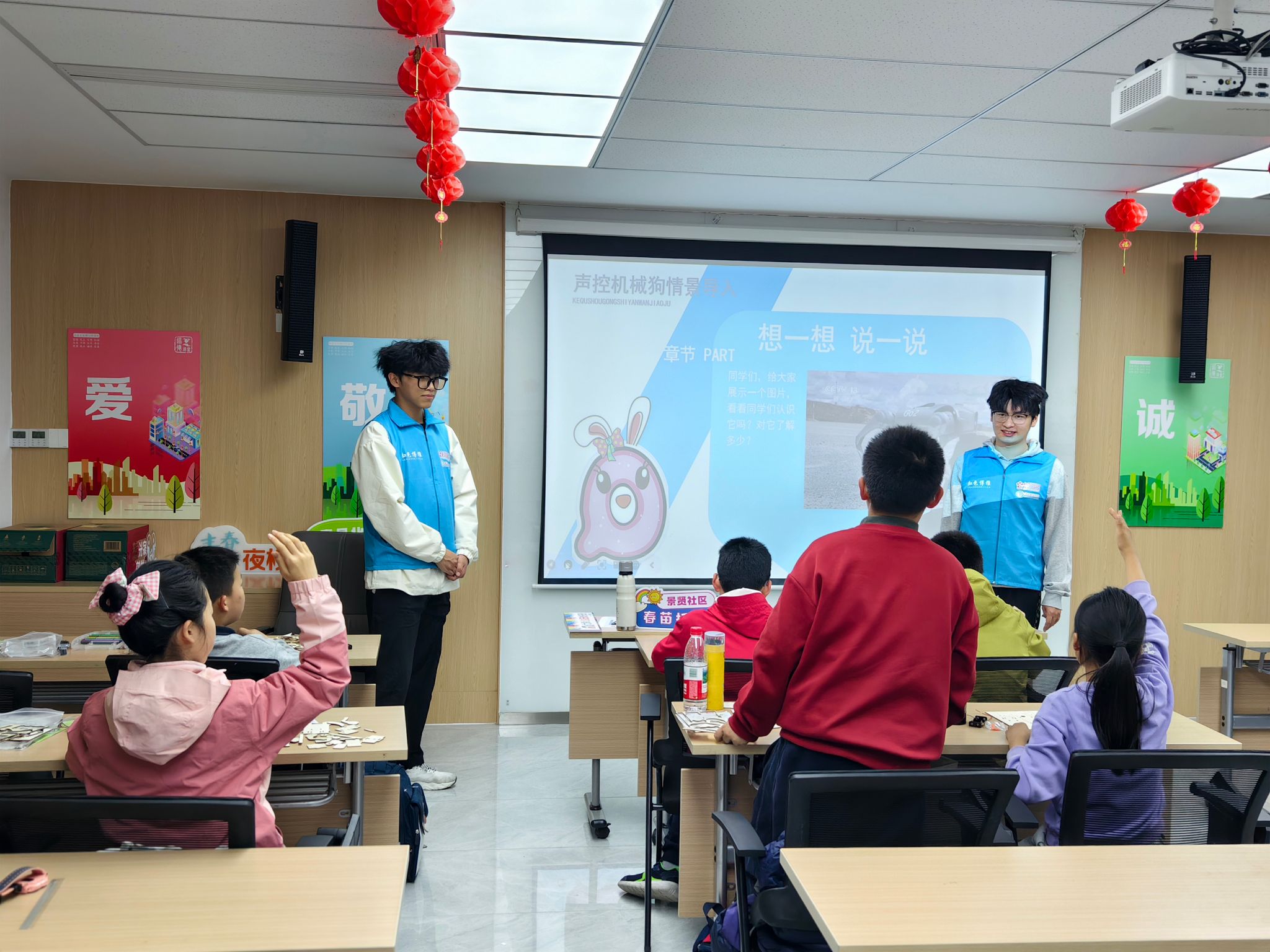 为丰富社区青少年春假课余生活,普及基础智能科技知识,机械工程学院志愿者于4月1日、4月3日下午走进景贤社区,开展“智识机械,童行成长”春假科普志愿服务系列活动。通过《走进AI世界:智能机器狗趣味课堂》和《小小工程师:声控机器人拼装课》两场精彩课程,带领社区孩子们动手探索智能科技的奥秘,在实践操作中感受科技的魅力与乐趣,为春假里的社区生活注入科技活力与人文温情。
