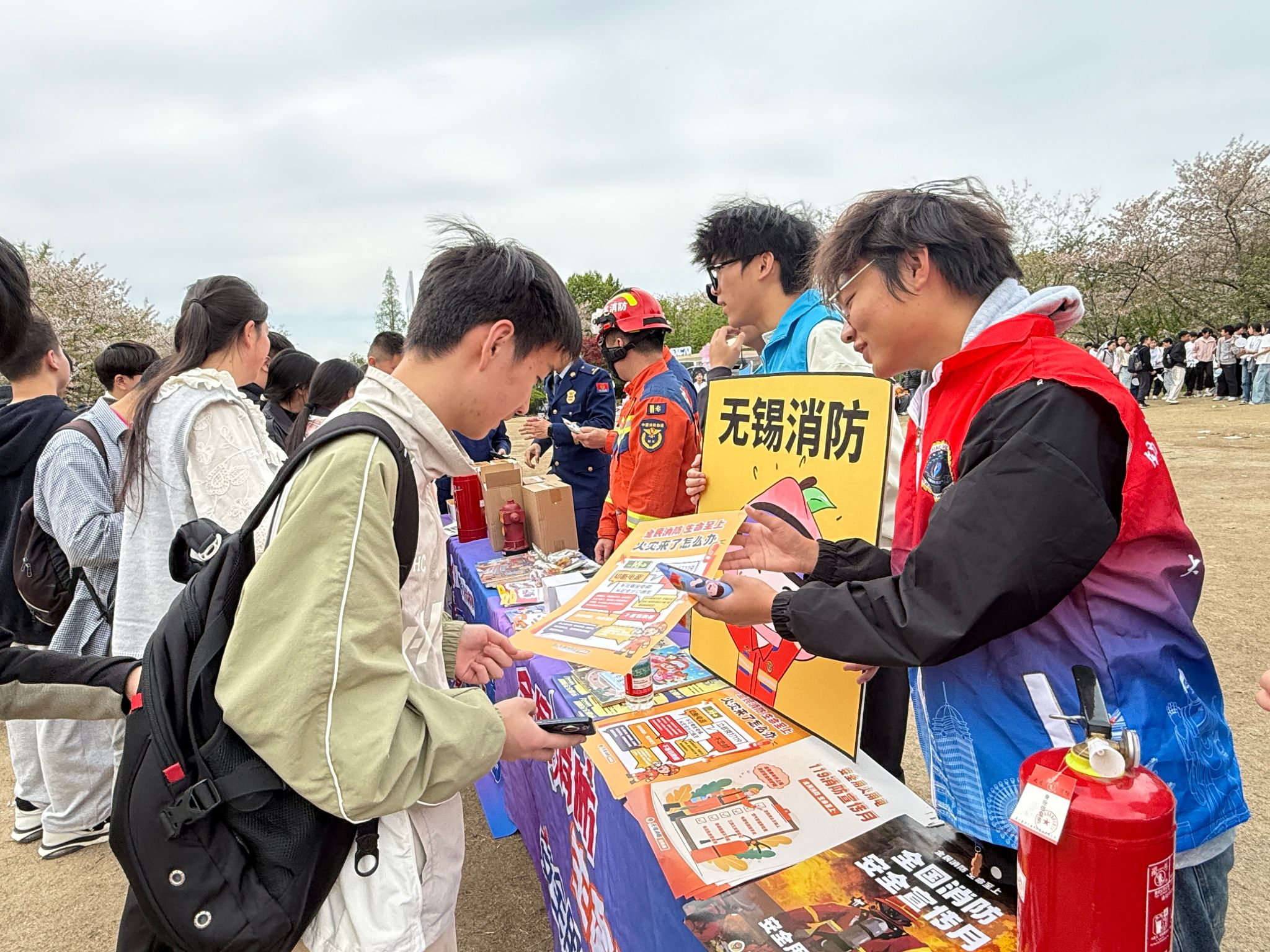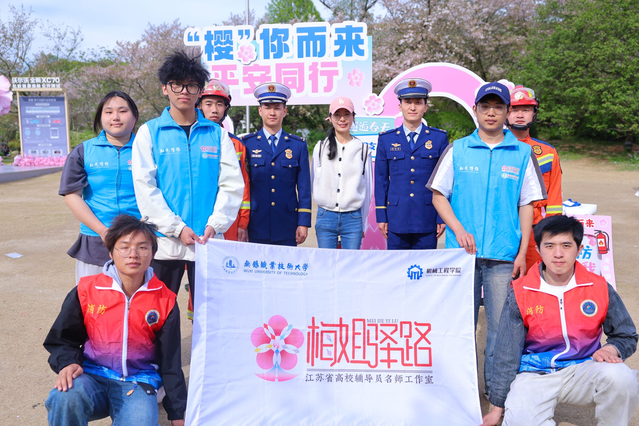 春日鼋头渚樱花盛放,景区迎来客流高峰,消防安全与游客安全成为重中之重。为持续深化“安全‘械’逅,‘护’你无忧”系列安全教育,全面落实立德树人根本任务与五育并举育人要求,践行青年志愿服务使命。4月7日下午,机械工程学院联合滨湖消防、学校保卫处,组建学生志愿者队伍,化身“安全守护官”走进鼋头渚景区,全力参与樱花节消防安全保障行动,以青春力量守护景区平安。