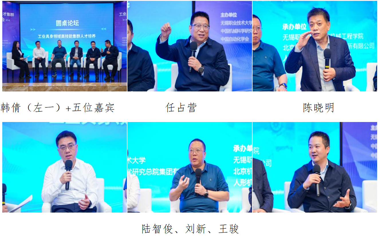 圆桌论坛环节由中国教育科学研究院职业教育与继续教育研究所韩倩博士主持,围绕工业具身智能领域高技能集群人才培养与生态构建核心议题,教育部职业教育发展中心副主任任占营、机械工业教育发展中心首席研究员陈晓明、北京机械工业自动化研究所有限公司副总经理刘新、中国电气装备集团数字科技有限公司总经理助理兼技术总监陆智俊、我校机械工程学院院长王骏五位嘉宾展开深度研讨,从政府统筹引导、行业标准对接、企业岗位需求、人才能力培养、院校教学改革等维度,系统剖析工业具身智能人才培养面临的痛点难点,共同探讨政行企校多方并联作为、深度协同的实施路径,为项目落地实施凝聚了广泛共识、提供了清晰可行的实践指引。