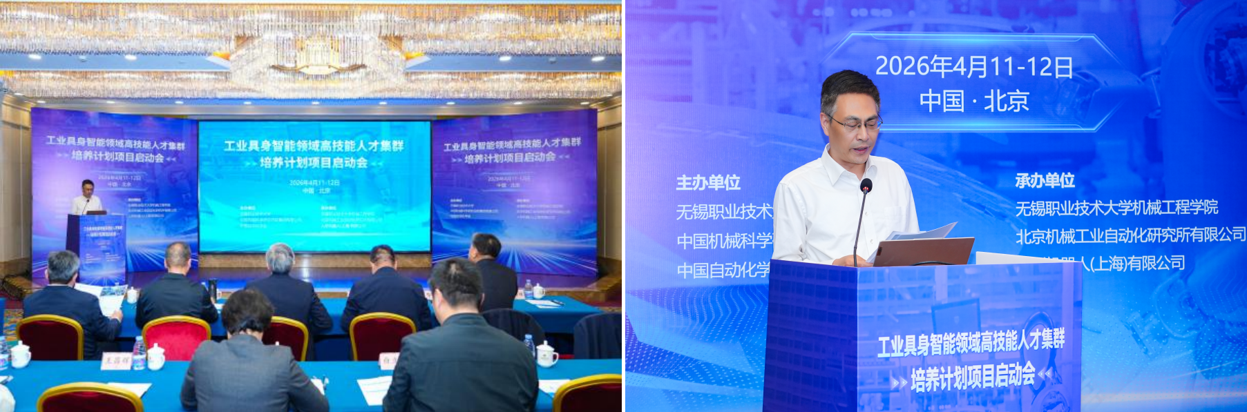 4月11日至12日,我校联合中国机械科学研究总院集团有限公司、中国自动化学会共同主办的工业具身智能领域高技能人才集群培养项目启动会在北京西郊宾馆举行,来自全国25所高职院校、行业领军企业、科研院所及主管部门的80余名代表齐聚一堂,共商产教融合新路径,描绘人才培养新蓝图。