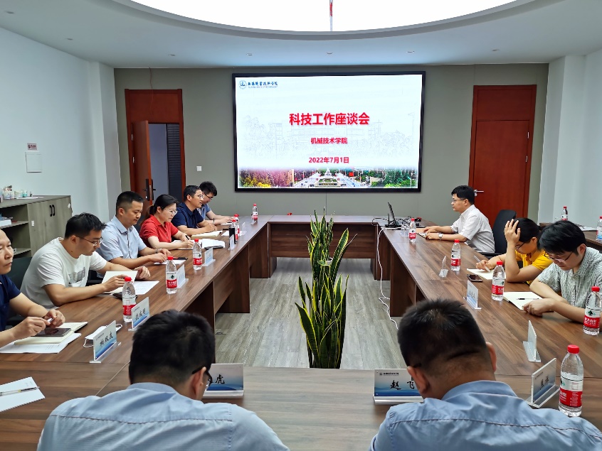 2022年7月1日上午,吴慧媛校长带领科产处钱晓忠、饶成明、钱王欢等领导赴机械技术学院召开科技工作座谈会。机械技术学院王骏、俞张勇、于金程和近20位博士参加会议。会议由钱晓忠主持。