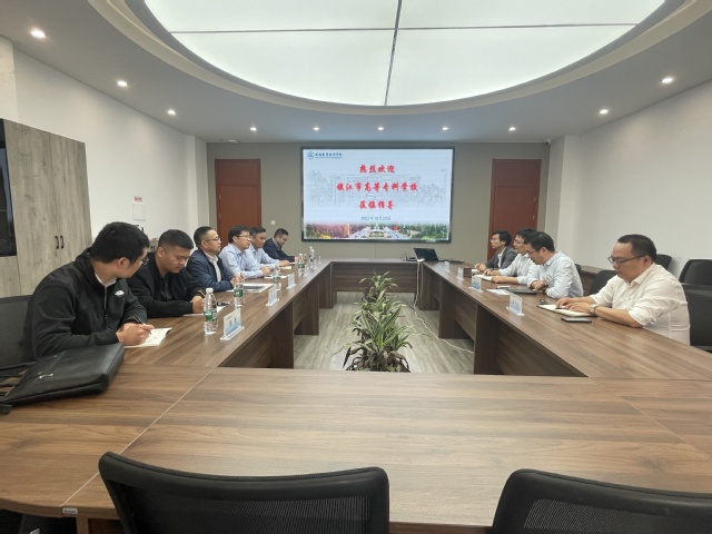 10月23日上午,镇江市高等专科学校唐红雨副校长一行来院调研。机械技术学院党总支书记王振华、院长王骏、副院长俞张勇、学校教务处实践科赵子云科长及机械学院相关老师参加了座谈交流。