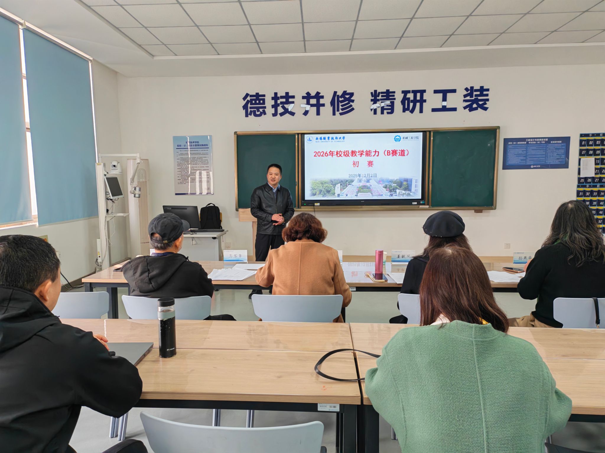 为贯彻落实全国教育大会精神和《中共中央 国务院关于弘扬教育家精神 加强新时代高素质专业化教师队伍建设的意见》要求,以教育家精神为引领,进一步激发我校新任教师更新教育理念、掌握先进教学方法、提高教育技术应用能力、探索智慧教学新形态,助力学校高质量发展,2025年12月2日下午,机械工程学院在工业中心S405组织举办了“2026年教学能力(B赛道)比赛”。比赛由院长王骏主持。分院领导班子、教务处副处长唐立平、质控部副处长陈慧、教师代表、分院教师代表组成了专家组参加了听课评课
