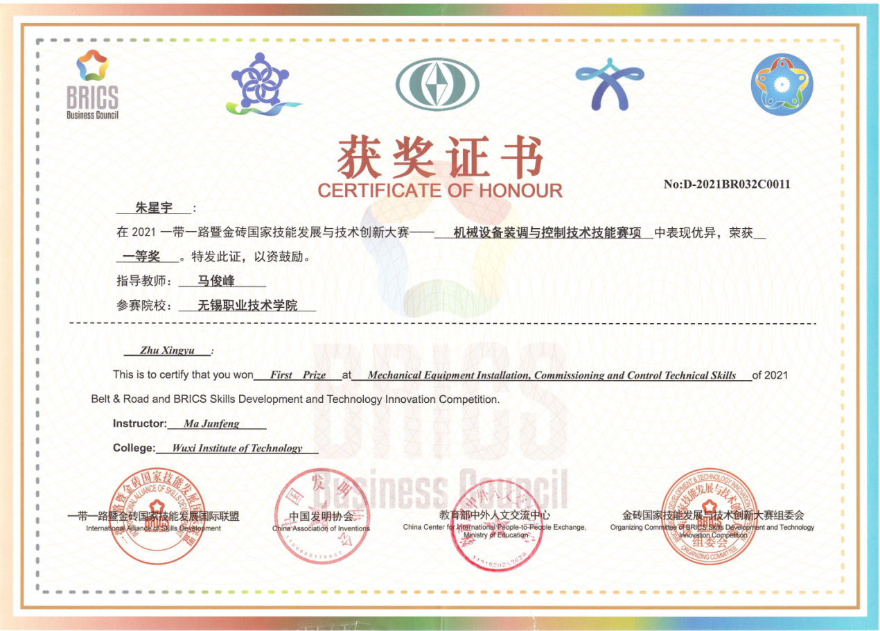 一带一路暨金砖国家技能发展与技术创新大赛(高校组) 一等奖