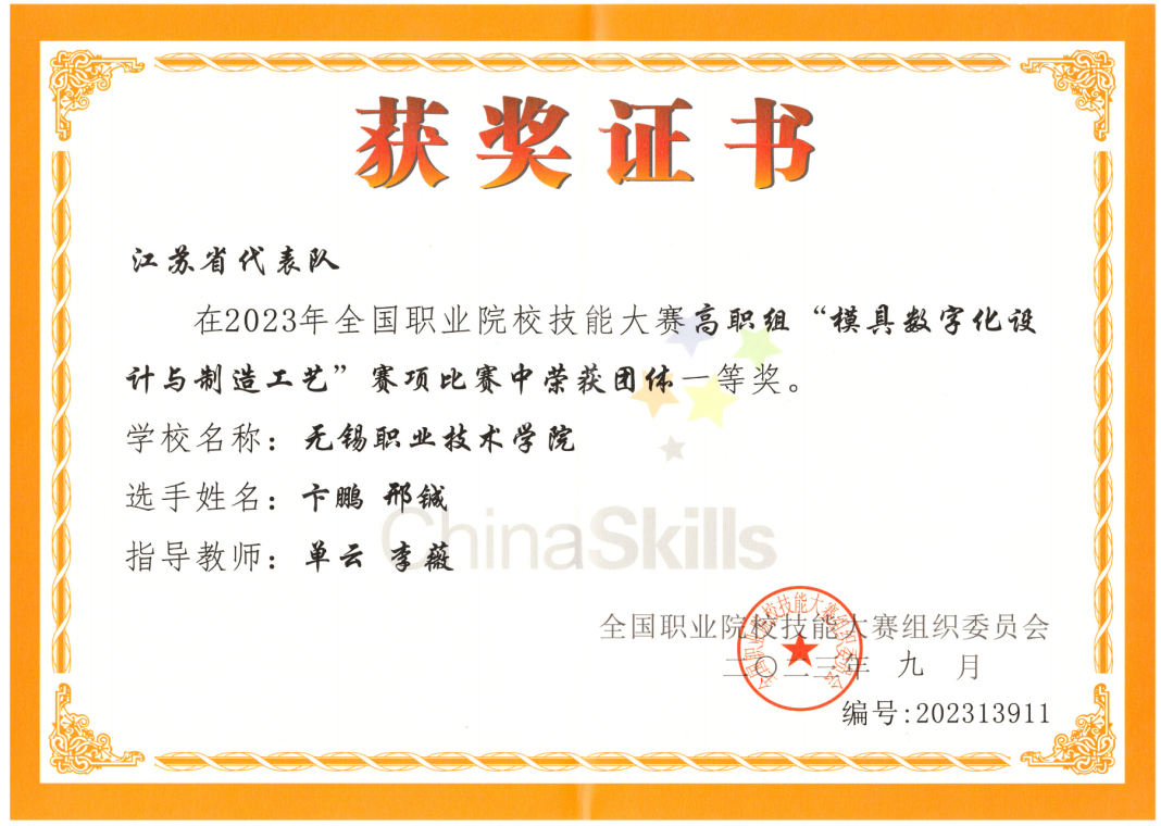 2023年全国职业院校技能大赛高职模具数字化设计与制造工艺赛项一等奖