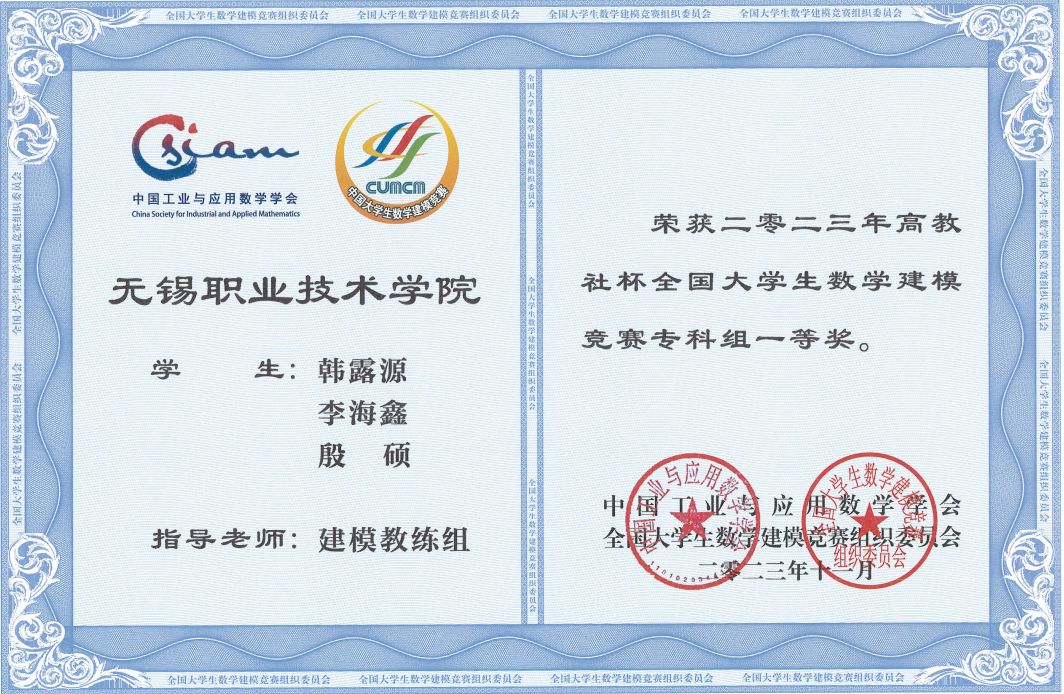 2023年“高教社杯”全国大学生数学建模竞赛一等奖