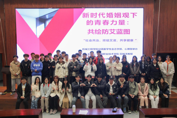 在第37个“世界艾滋病日”来临之际,为深度落实响应“社会共治,终结艾滋,共享健康”宣传活动主题,营造全社会参与艾滋病防治工作的良好氛围,进一步落实我校艾滋病防治宣传工作,2024年12月1日,机械工程学院团总支在国际交流中心一楼报告厅举办以“新时代婚姻观下的青春力量:共绘防艾蓝图”为题目的防艾宣传活动,进一步提升师生群体对艾滋病的自我防范意识,保障全体师生的健康与安全。活动邀请我校接受省级防艾培训的花树洋教授和机械工程学院分团委书记薛红波老师现场指导,全校青年师生共200余人参加本次活动。