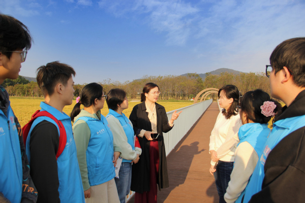 秋风吹过广袤的大地,百亩稻田在阳光的照耀下熠熠生辉。“今年无锡天气高温,影响了水稻的结实率,所以我们采取了以水调温、科学施肥、叶面喷施等手段应对。”马山街道嶂青社区原书记、无锡职业技术学院机械工程学院特聘校外关工委委员殷娟和同学们介绍道,“以前我们是‘靠天种田’,现在我们是‘科技种田’,这得益于街道建成‘智慧田间气象站’,通过‘数字大脑’,助力农业高质高效生产”。
