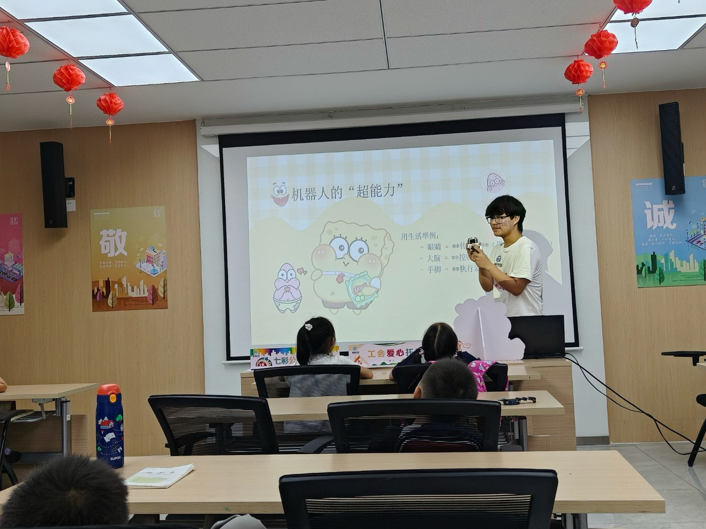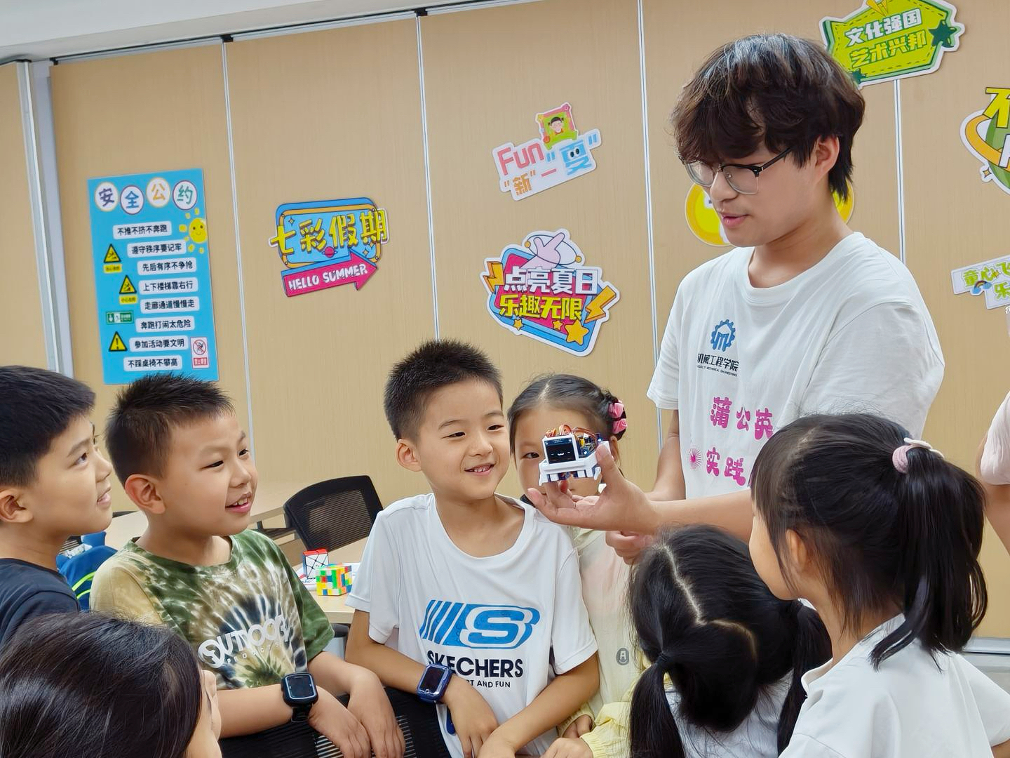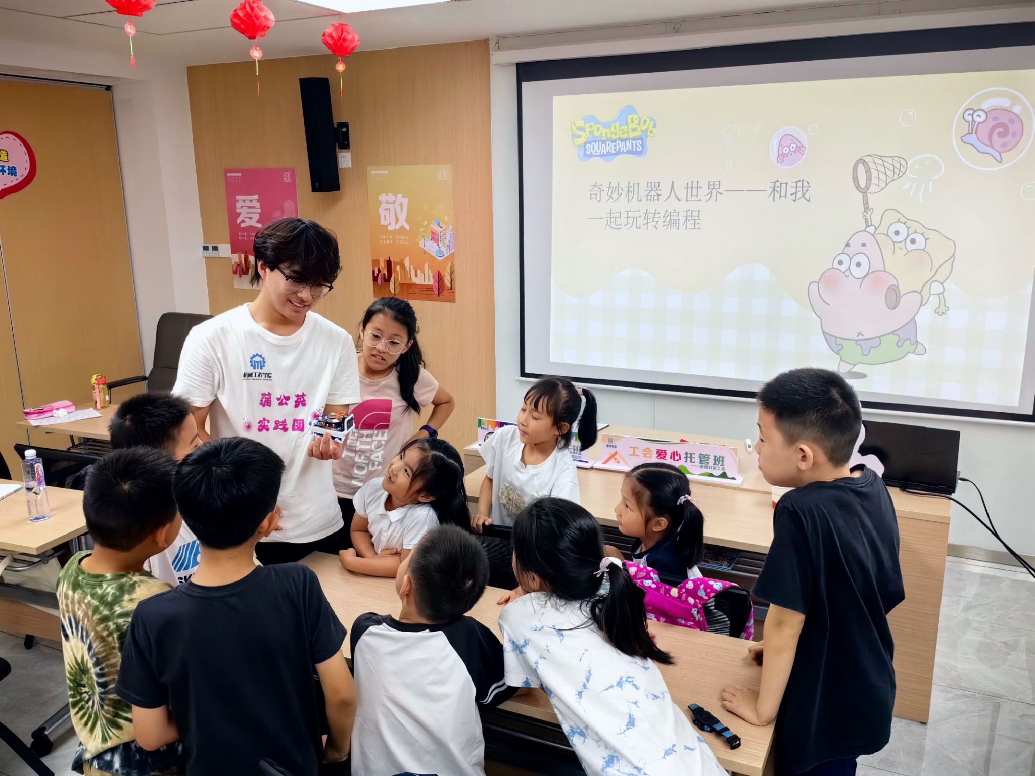 7月9日,“蒲公英”支教实践团立足科学启蒙的关键期,在景贤社区党群服务中心开展一场了以“感受奇妙机器人世界”为主题的青少年编程教育实践课程,为社区青少年打开了一扇通往科技世界的奇妙窗口。