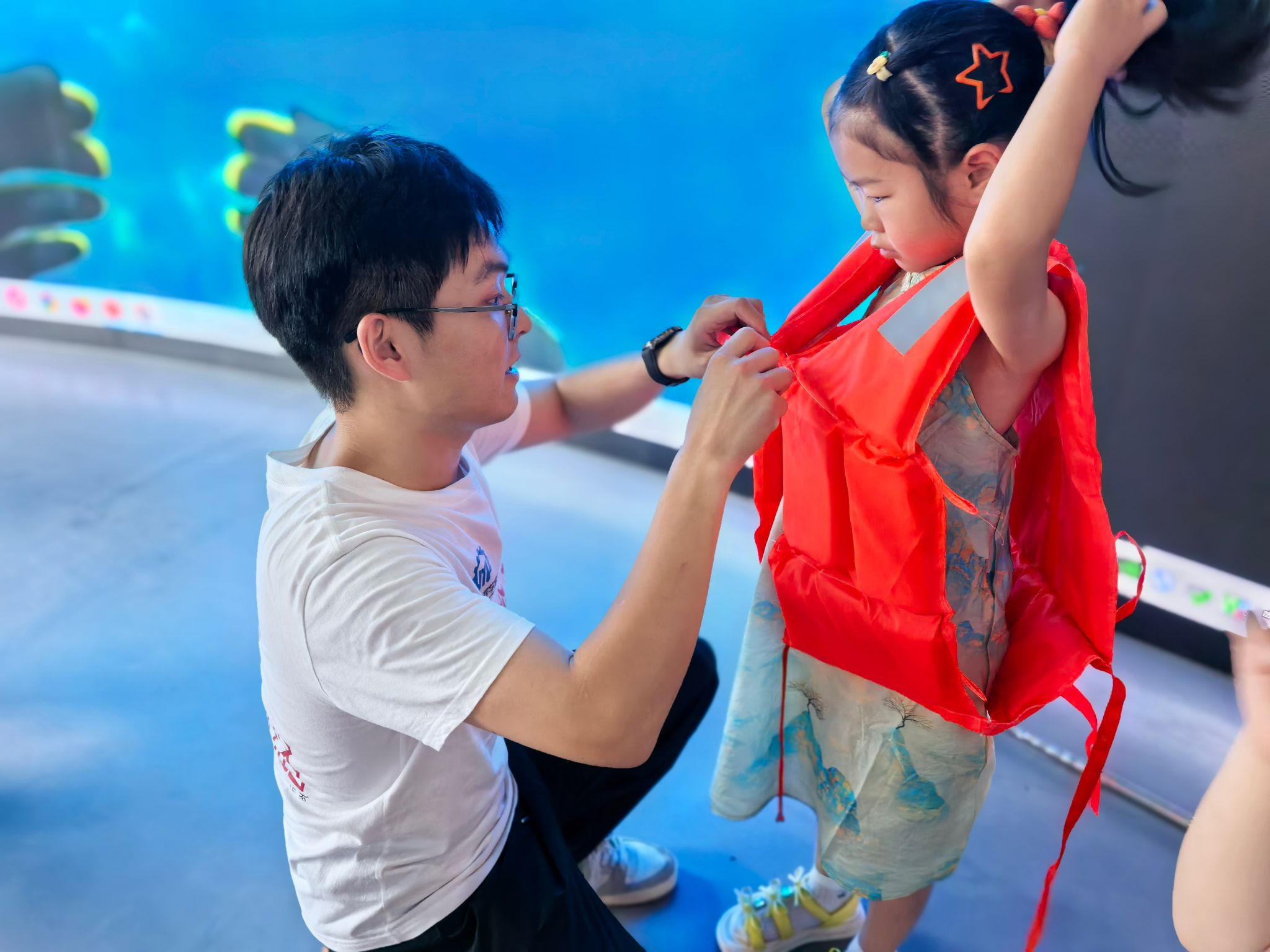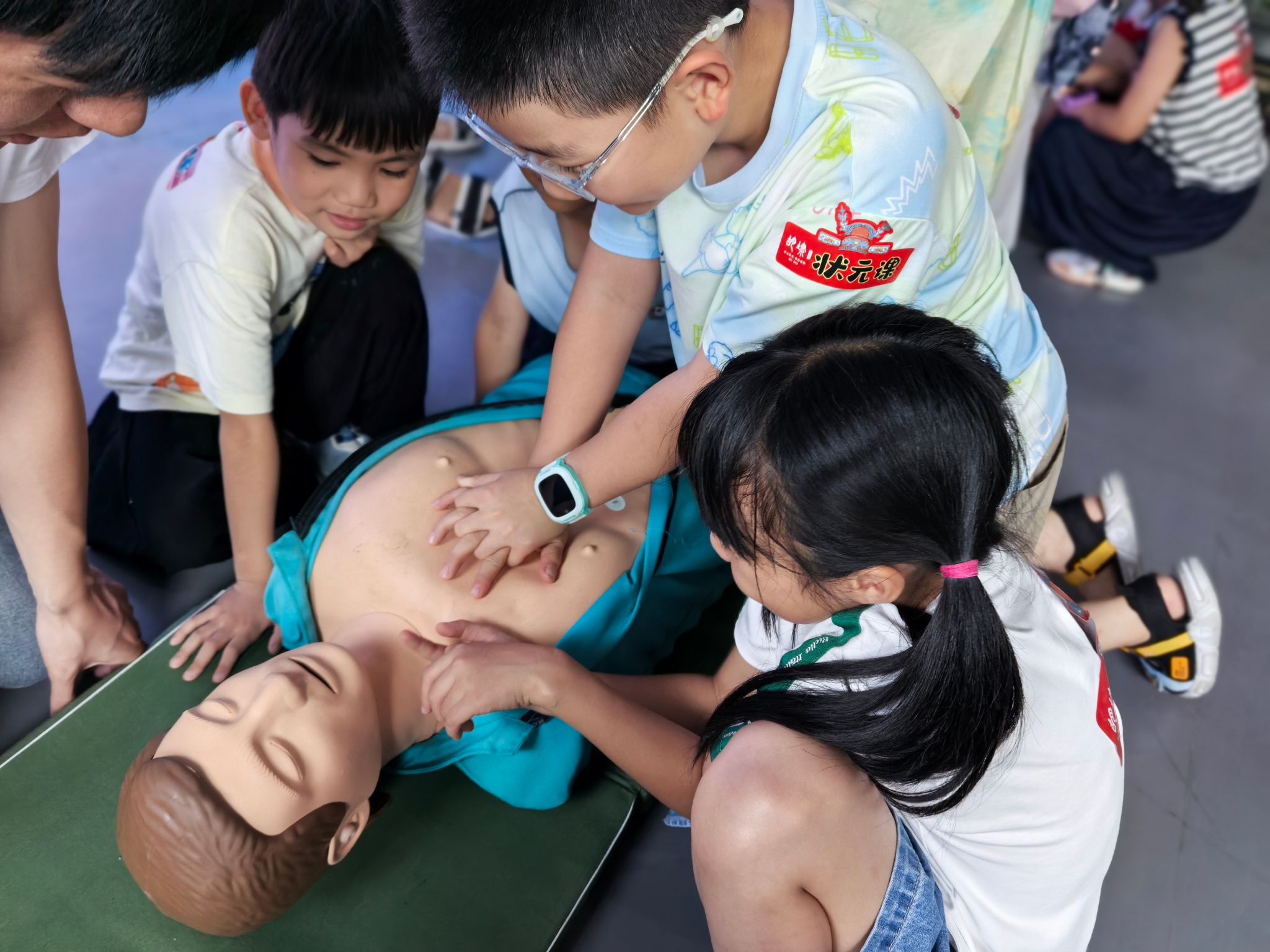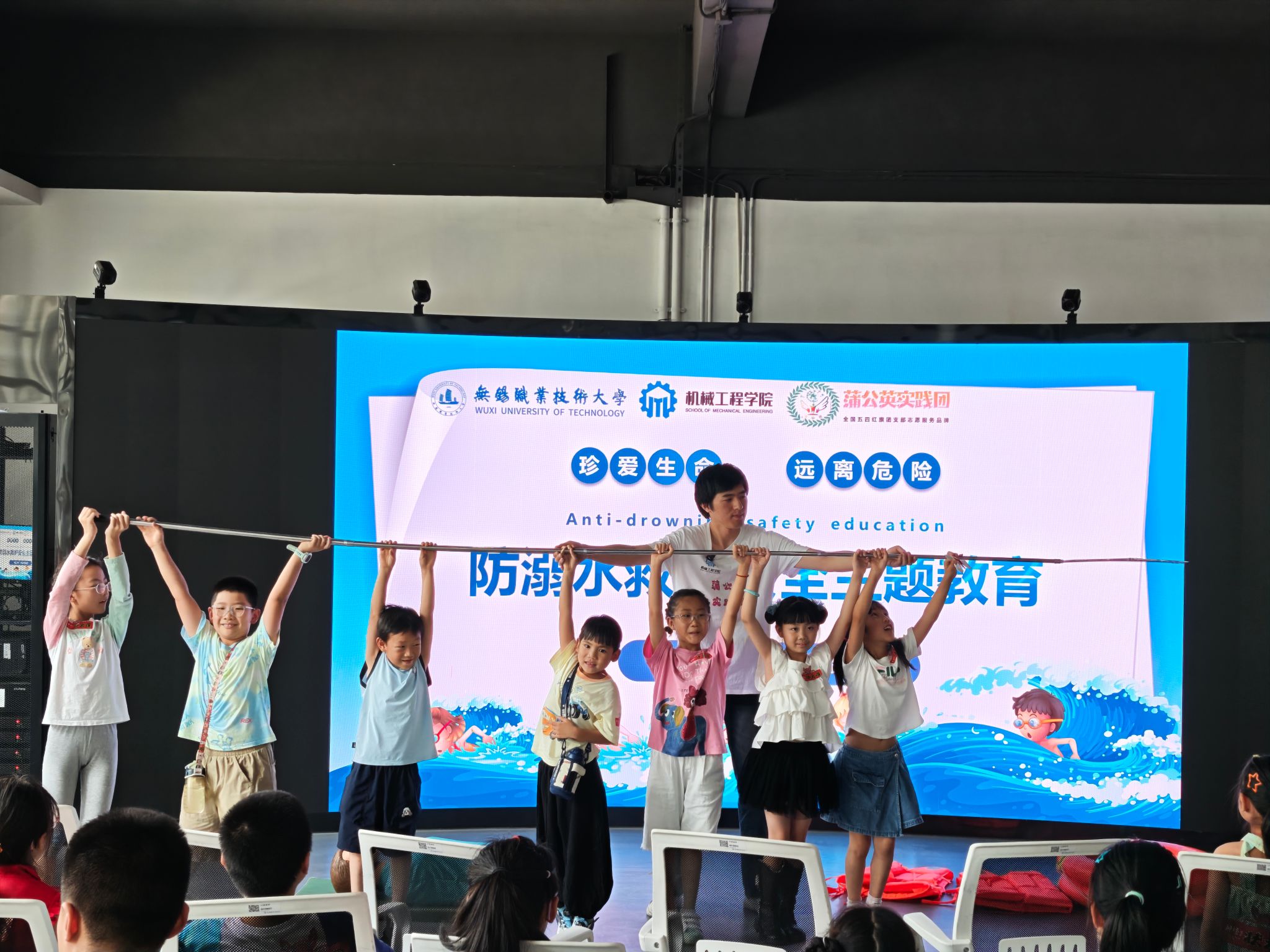 VR实训室内,传统的黑板讲解被高科技VR设备取代。学生们仿佛瞬间“置身”于逼真的水域场景——波光粼粼的泳池边、水流湍急的河边、或是看似平静却暗藏风险的陌生水域。实践团精心模拟了多种溺水险情:不慎滑入深水区、遭遇水下漩涡、同伴意外落水等,通过虚拟实操、道具演示,学生们深刻掌握了保持冷静、采取正确姿势、利用身边物品自救以及科学呼救、安全施救等核心知识和技能。志愿者则结合VR体验,深入浅出地剖析了水域风险点、人体在水中的力学特性以及盲目施救的危害,将安全知识烙印在学生记忆中。