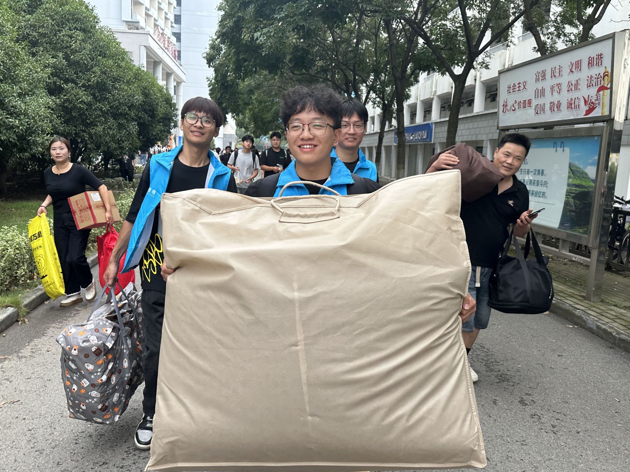 学院以精准化、闭环式服务为核心,科学规划志愿服务布局,将志愿者精准划分至北门、南门及足球场三大核心点位,组建专属服务小组形成“入校-报到-入住”闭环服务。南北两门的志愿者化身“校园向导”,主动接过行李,在细致协助完成信息核验的同时,结合校园地图,清晰地为新生指明报到路线与方向;足球场点位的志愿者则全程护航报到流程,从手续办理到饭卡、学生证发放,每一步都耐心细致,并陪同新生前往宿舍,用“一站式”服务让新生从踏入校园到安顿入住全程无忧。