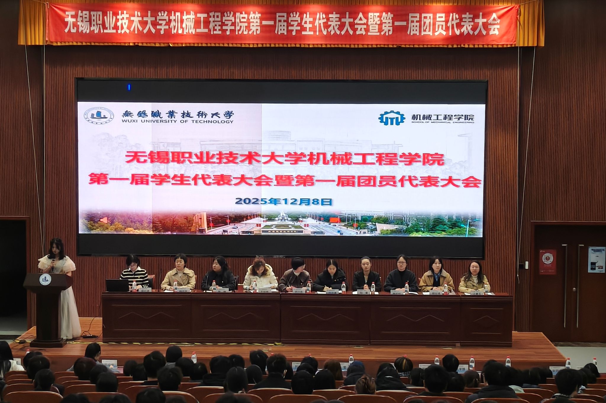 2025年12月8日,无锡职业技术大学机械工程学院第一届学生代表大会暨第一届团员代表大会在学校国际交流中心一楼报告厅顺利召开。校团委书记郑月圆、机械工程学院党总支副书记王丽梅、各学院分团委书记、学院学工办全体辅导员及全院258名团员学生代表参加大会。大会还邀请了太湖创意职业技术学院交流辅导员任远真老师出席,进一步促进了校际团学工作的交流与互鉴。