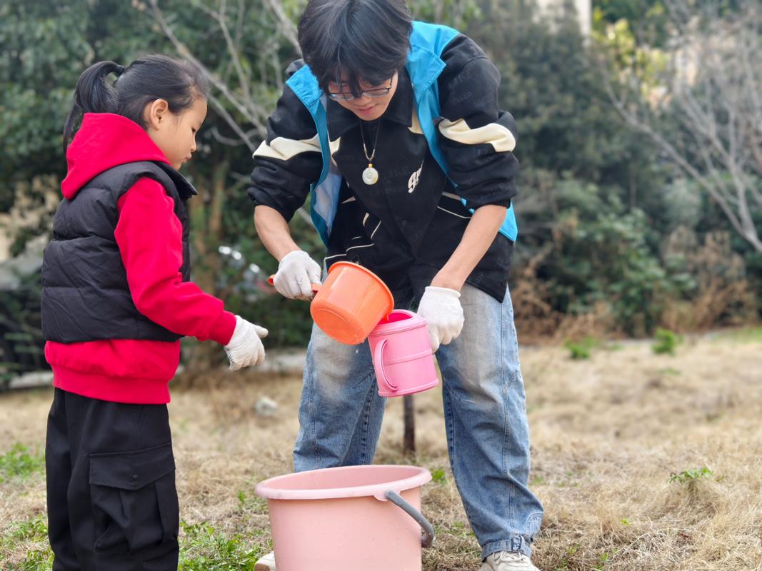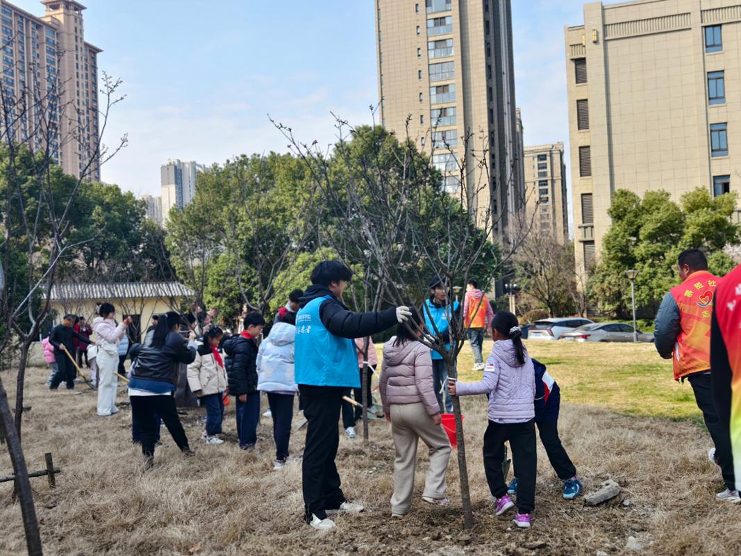 活动现场,我院志愿者带领社区小朋友一起挥锹挖坑、扶苗填土、回填土壤、踩实固定、浇水定根,在劳动中相互配合、彼此帮助。过程中,志愿者们耐心指导小朋友掌握正确的栽种方法,细致讲解植树护绿、保护环境的小知识;孩子们认真倾听、积极动手,在实践中体验劳动乐趣,感受绿色生命的意义。欢声笑语、泥土芬芳与汗水交织在一起,构成了一幅生动的劳动教育画卷,一棵棵小树苗扎根泥土,为社区增添了勃勃生机,也在孩子们心中种下了绿色、责任与希望的种子。