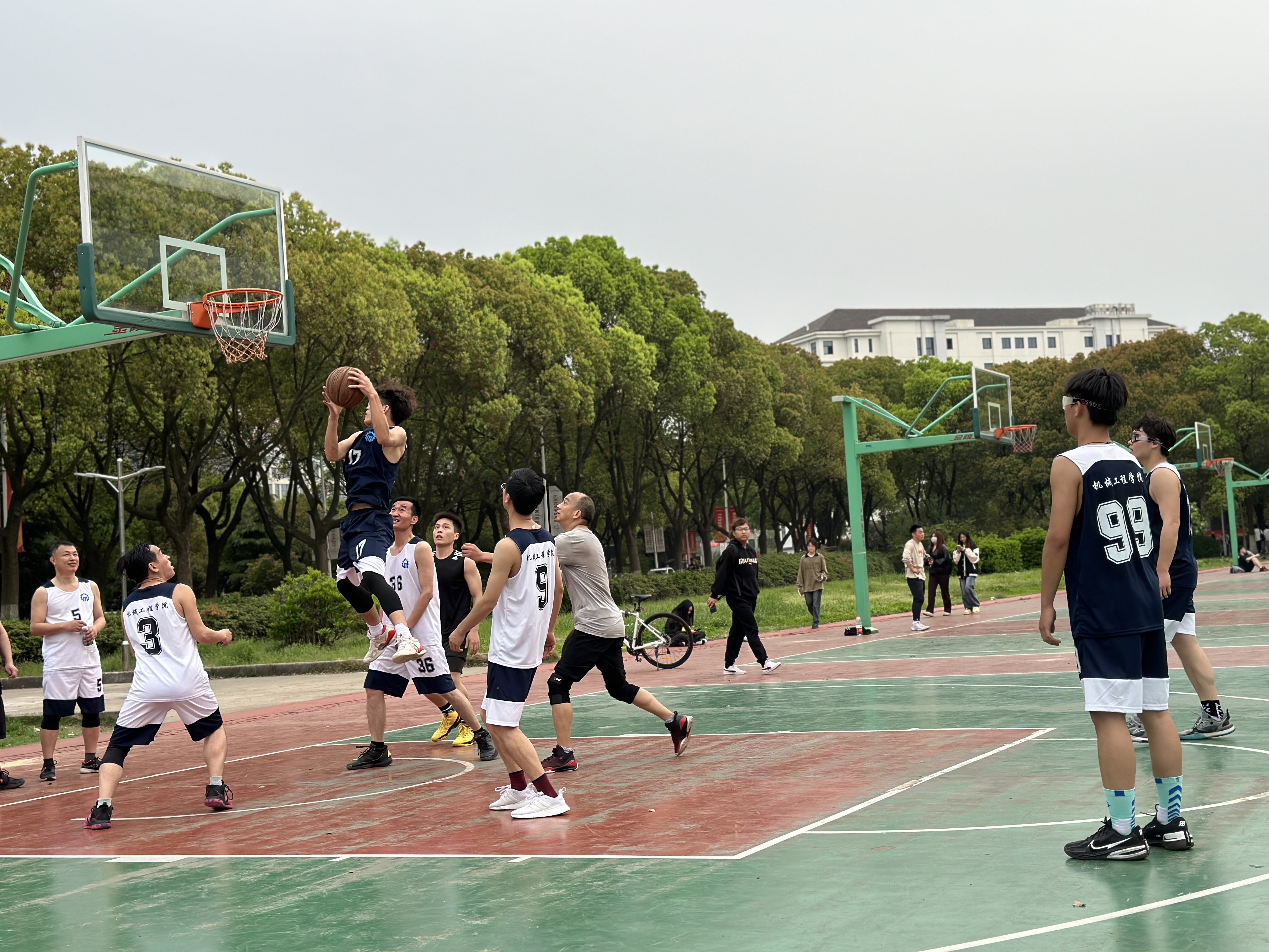 为贯彻落实习近平总书记关于建设体育强国、提高人民健康水平、实现中国梦的重要指示,落实学校“学生的家园”办学理念,推进“三全育人”工程走深走实,深化党团联动机制,丰富学生“第二课堂”,促进师生交流、增进师生情谊,2024年4月11日,机械工程学院开展“师生共聚 运动增情”师生篮球联谊赛。本次篮球赛由机械工程学院党总支和团总支联合发起,共计40余名师生参与,由机械工程学院党总支副书记王丽梅主持,特邀“大国工匠”顾秋亮教授、集成电路学院党总支书记吴斌书记参赛。