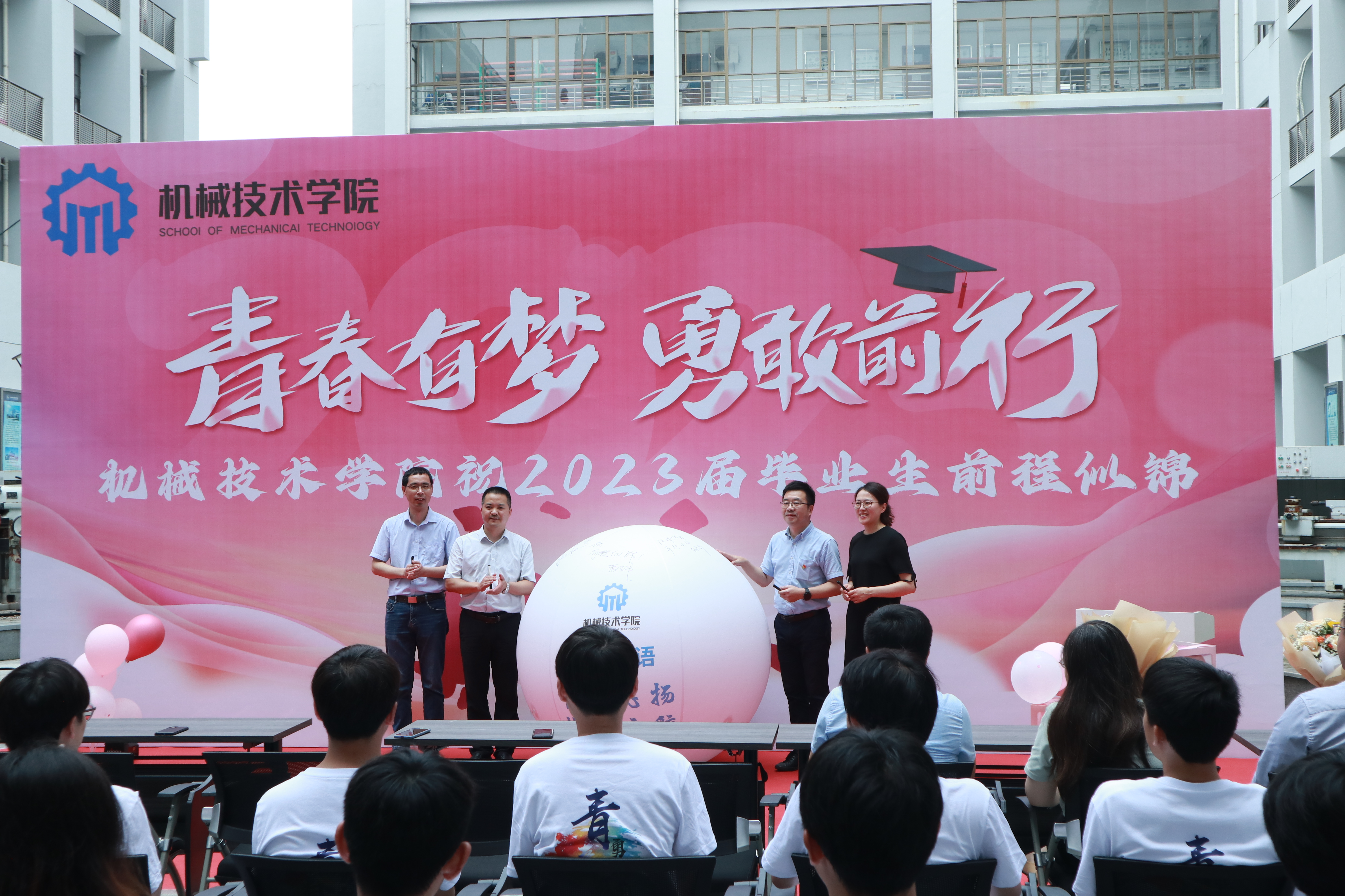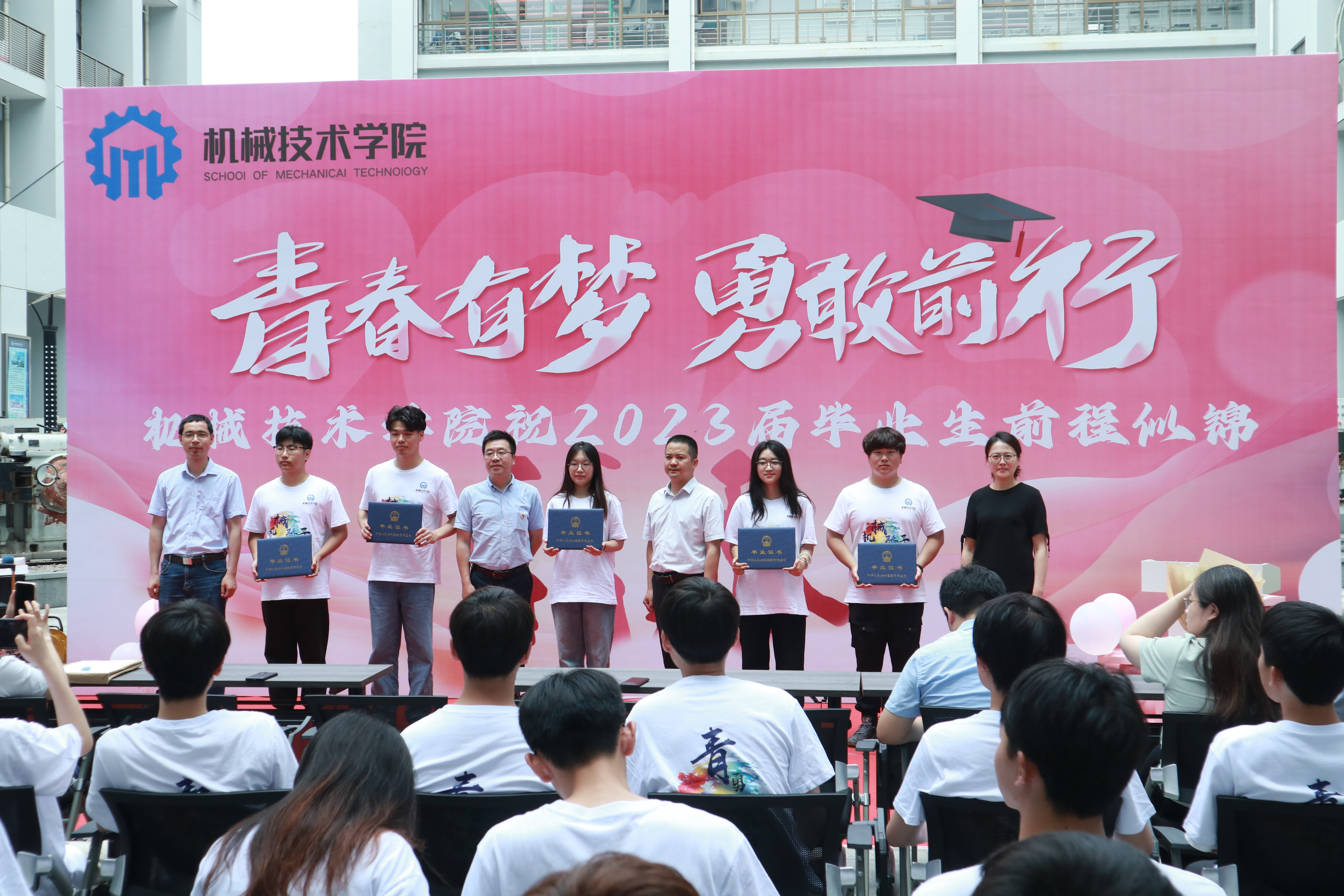 又是一年青春毕业季,在万物竞秀的美好时节,我们迎来了收获成长与喜悦、荣耀与梦想的光荣时刻。6月20日上午,机械技术学院在机械文化苑举行2023届毕业生欢送仪式。学院领导班子成员、辅导员、毕业班班主任、各系部主任、专业教师代表和本专科毕业班学生代表共同参加了仪式。