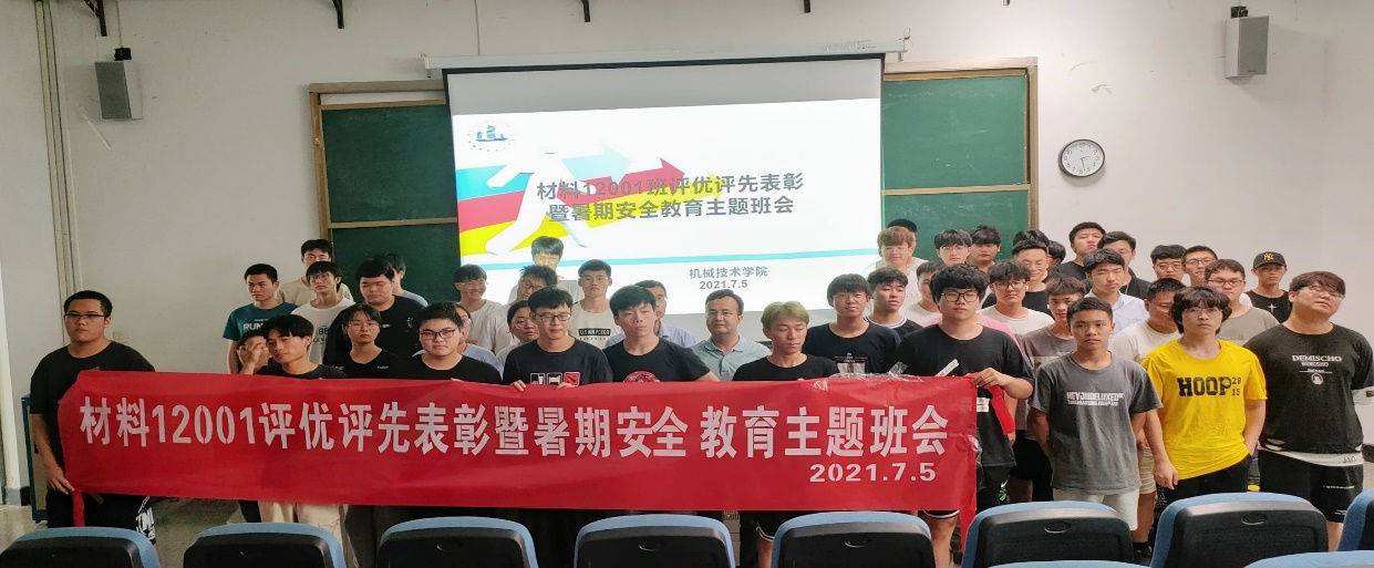 为表彰先进,营造良好班风,2021年7月5日下午,材料12001班在J4-102举行了“评优评先表彰暨暑期安全教育”主题班会。机械技术学院副院长唐立平作为联系班级的领导参加了表彰大会、班主任塔衣尔老师及材料12001全体同学参加了本次活动,活动由班长李润浩主持。