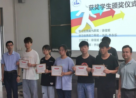 活动伊始,唐院长与塔老师为获得2020-2021-1学期“校级学习优秀奖”、“校级优秀学生干部”、“校级三好学生”荣誉的5位同学颁发了荣誉证书。随后,优秀班干部代表乔晓峰同学和三好学生代表徐佳妮同学发言。乔晓峰同学分享了自己担任生活委员过程中的收获与成长,并呼吁每一位同学都参与进班级建设中,争创先进班级。徐佳妮同学结合自己的学习感悟,鼓励大家寻找适合自己的学习方法,持之以恒,必将满载而归。