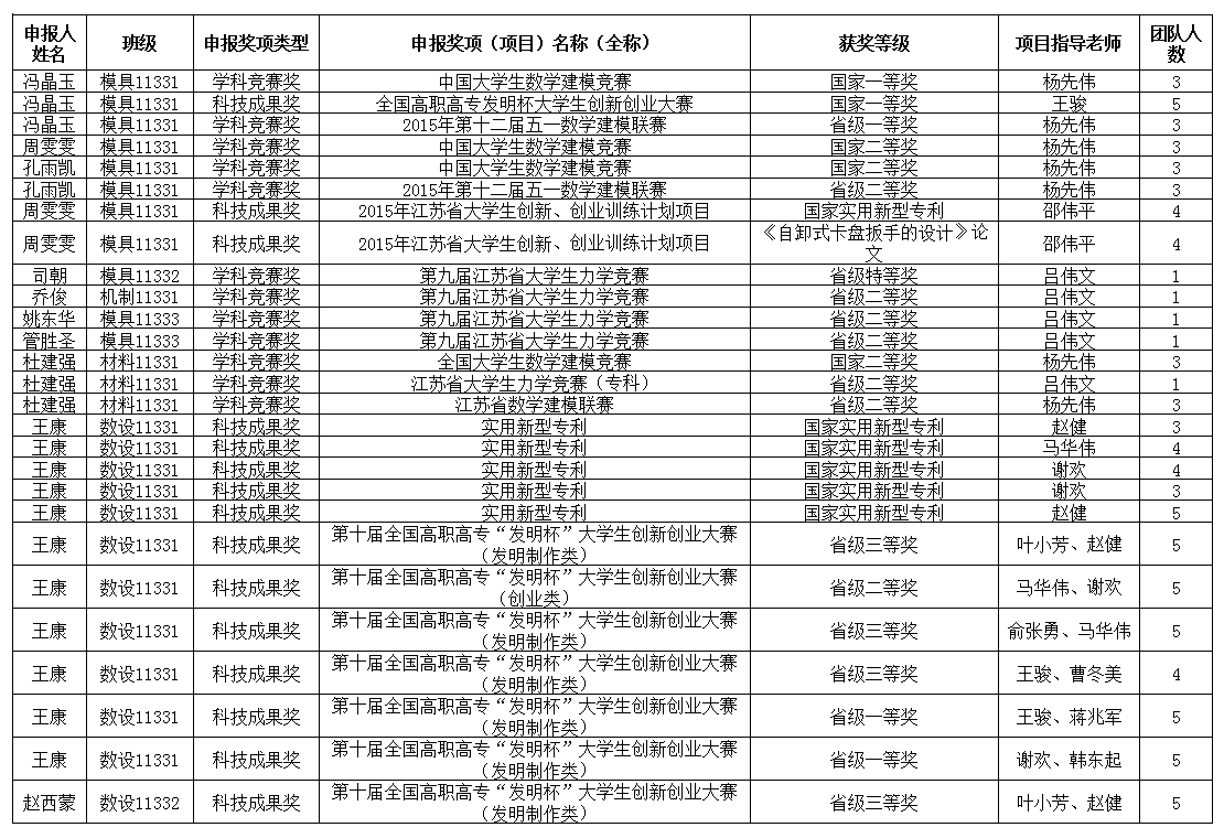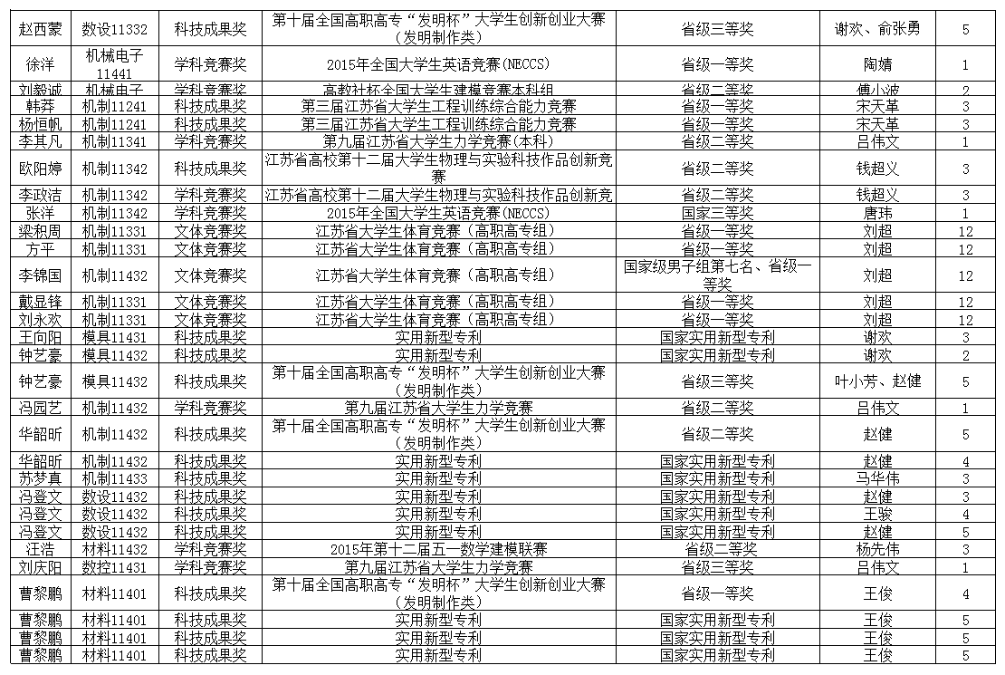 2015年品牌学生获奖汇总