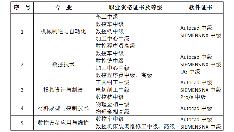 我校设有“国家职业技能鉴定所”、“江苏省机械职业技术教育中心”等,开设了63个工种的职业技能培训鉴定,针对机械技术学院各专业学生可考职业资格证书及软件证书如下表: